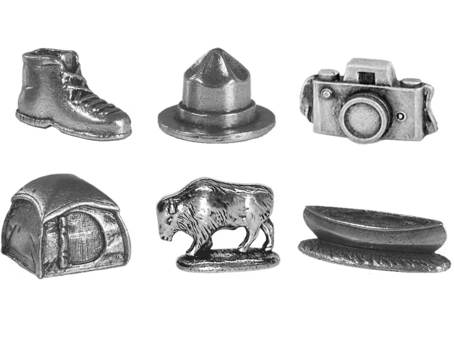 Also featured in the game are the animals that have captured our hearts and curiosity and call the national parks home, including the grizzly bear and the majestic bald eagle. There are six collectable tokens including a ranger hat, tent, canoe, bison, hiking boot, and camera. Historic Sites and Battlefield Parks cards replace the traditional Chance and Community Chest cards. This special edition also includes a set of 60-minute speed play rules for faster gameplay. A portion of proceeds goes to the National Park Foundation.
