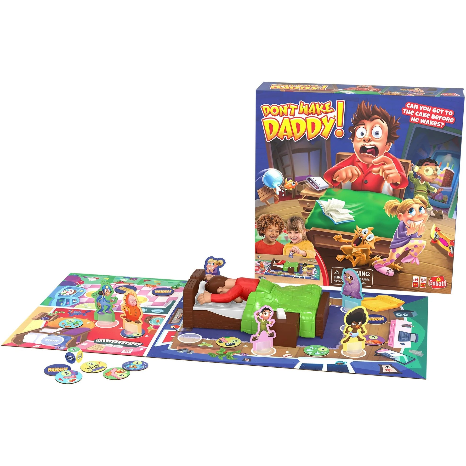 Tiptoe past the clanging toys, barking dog, and creaky floorboards—but whatever you do, Don’t Wake Daddy! This classic surprise-action board game brings laughter, tension, and thrills to your game nights. Kids spin the spinner, move around the board, and press Daddy’s alarm clock button the number of times shown on the space they land on. But watch out - if Daddy wakes up, it’s back to bed for you!