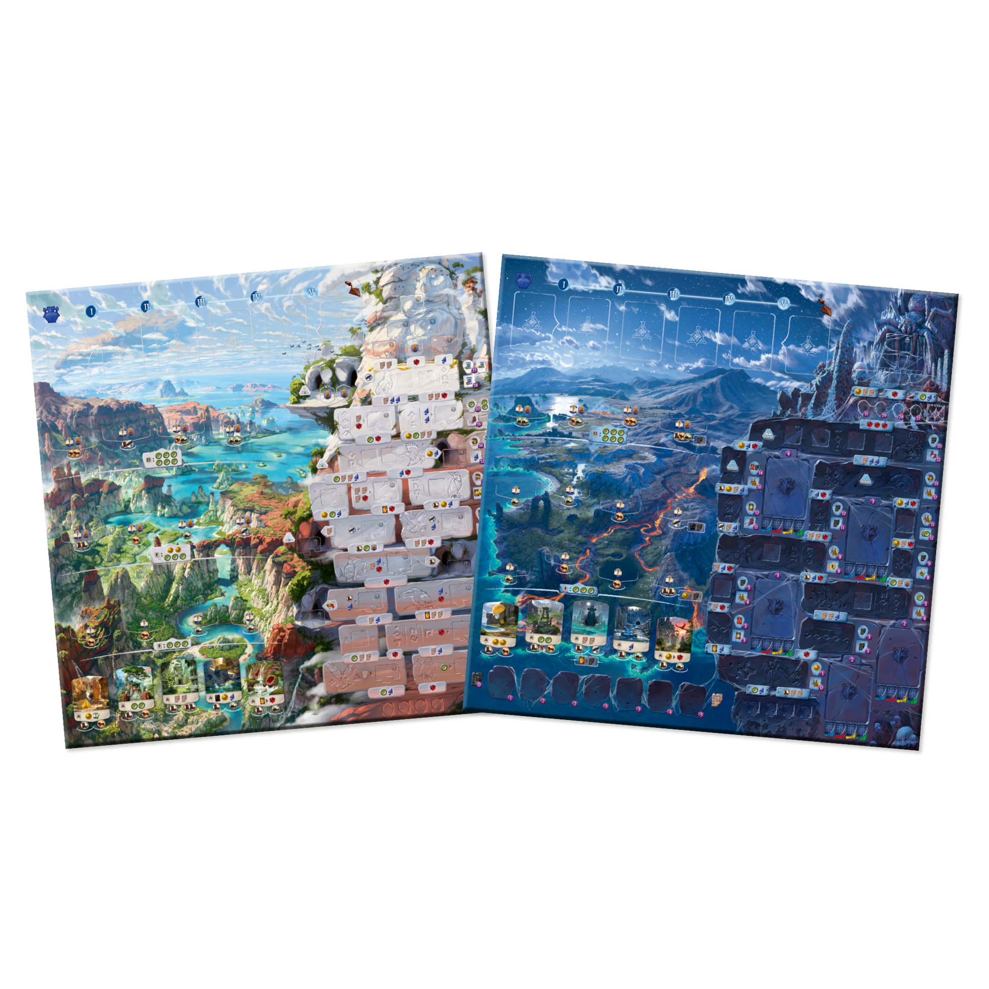 Explore undiscovered regions of Arnak! Twisted Paths is the final major expansion for Lost Ruins of Arnak. It brings a new double-sided map that’s bigger than the one in the base game and each side comes with its unique layout, research track and temple, and also its own new mechanisms and components (like brand new temple tiles or new resources - dark tablets). You can choose to explore the day side of the map and scale the Owl Temple or brave the night and journey through the dark caverns of the Spider Temple!