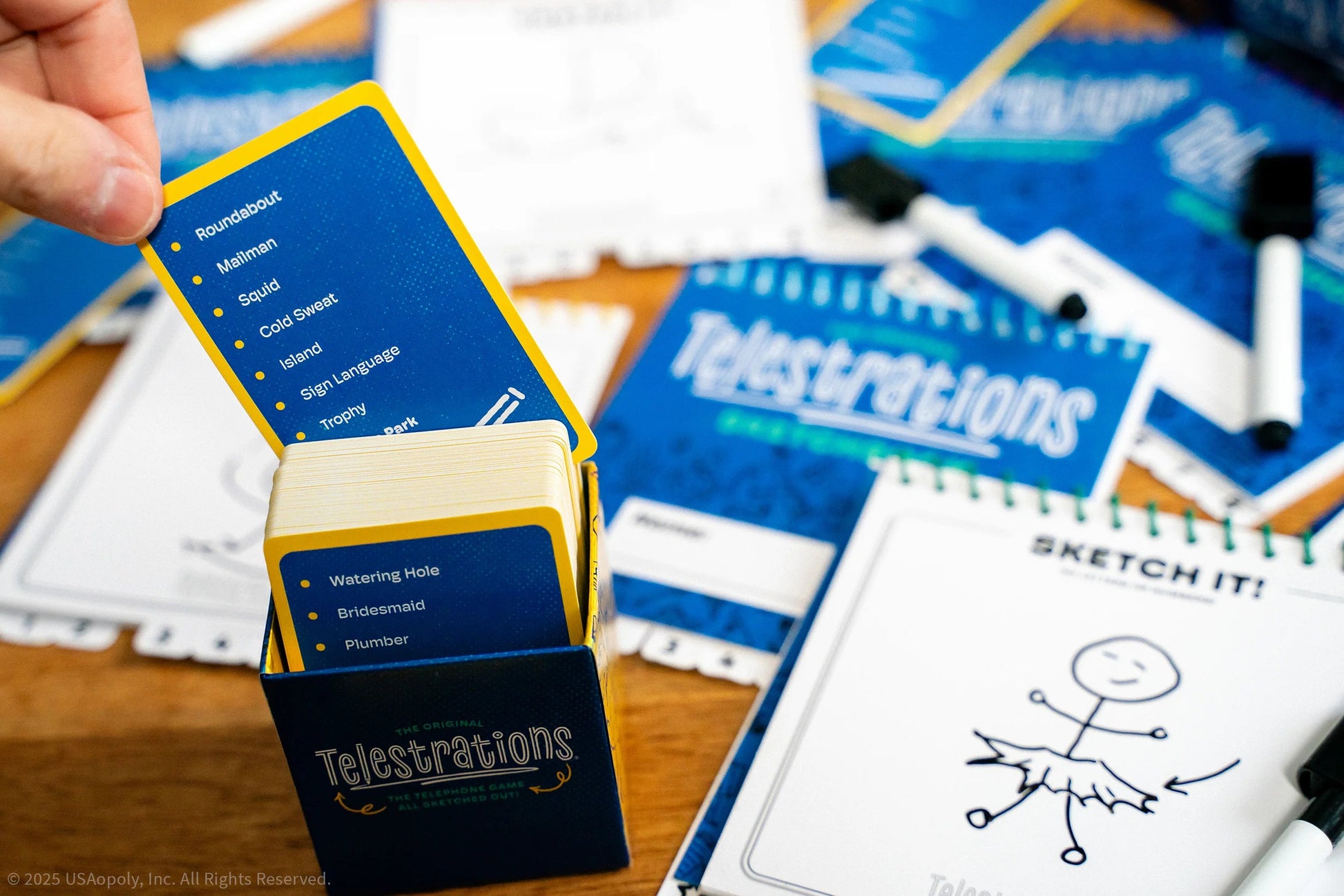 The award-winning party game Telestrations will get your family and friends laughing as they draw what they see, then guess what they saw for hours of hilarious miscommunication. All players simultaneously sketch, pass and guess while revealing laugh out loud and unpredictable outcomes!