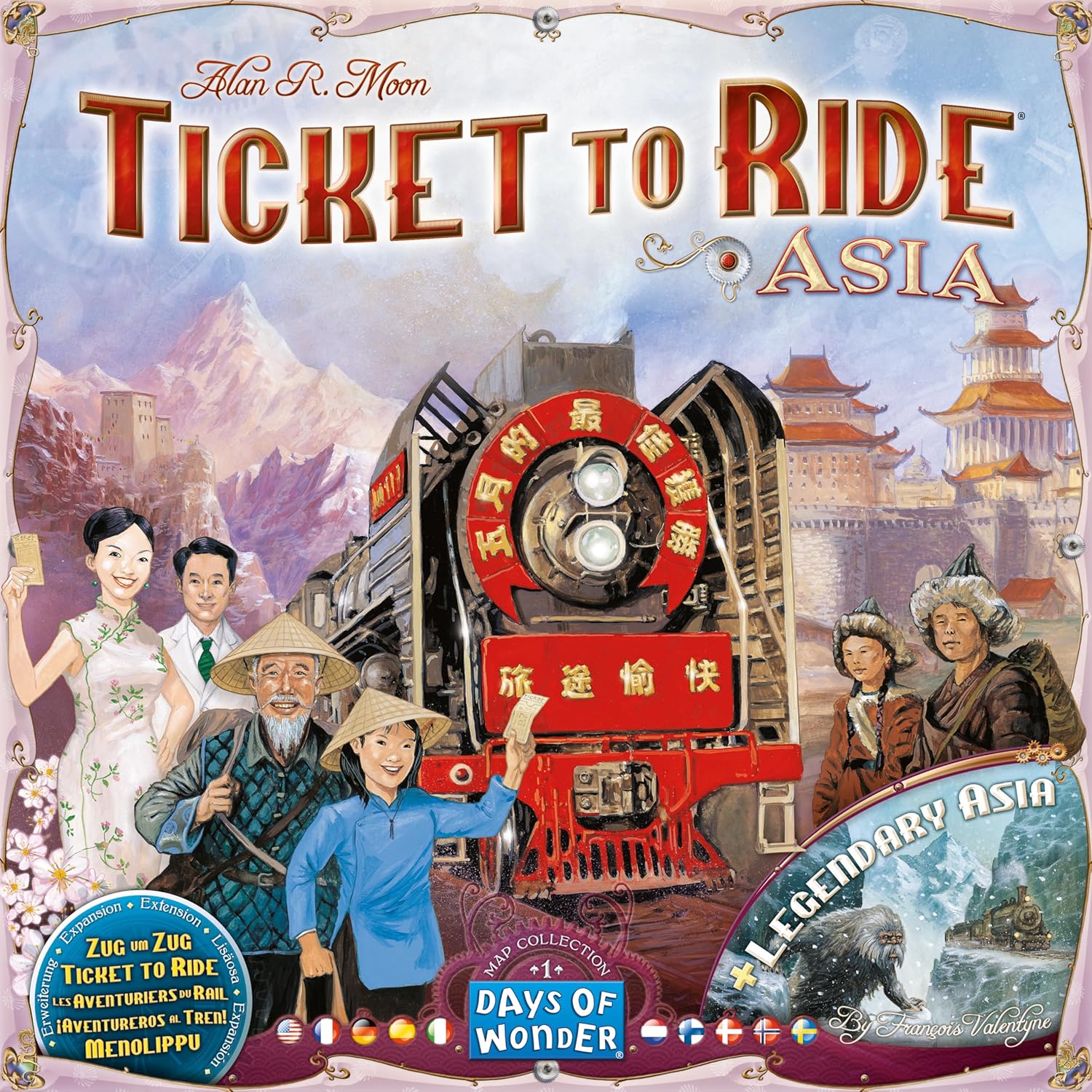 Introducing the Ticket to Ride Map Collection - a new series of Ticket to Ride expansions featuring 2 different Ticket to Ride maps on a single double-side board. Ticket to Ride Asia is the first volume in the Map Collection. You'll embark on an incredible adventure in Alan R. Moon's Team Asia map. Specifically designed for up to 6 players, you and a partner will team up against other groups on a 25,000 km wild ride from Kabul to Beijing, through the steppes of Mongolia and the Gobi Desert up to the Yellow River. Or, if you prefer the quiet pleasures of traveling alone along the Silk Road or winding your way through the hustle and bustle of Indochina, venture into Legendary Asia. Just be ready for a hair-raising ride through the Mountain passes of the Himalayas.